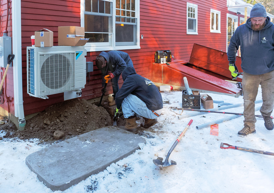 Nate Smith, Master Electrician (far right) looks over the slab that will hold the Generac while his crew dig the trench that will carry electricity from the generator into the house.