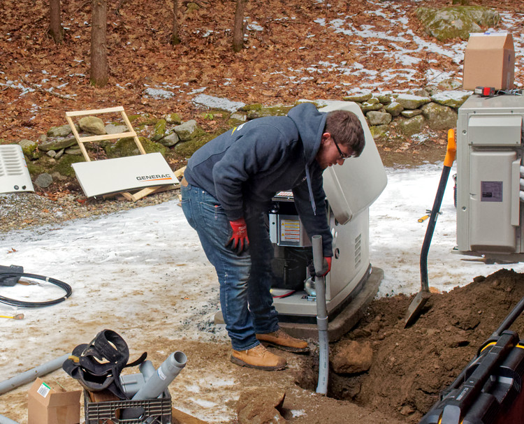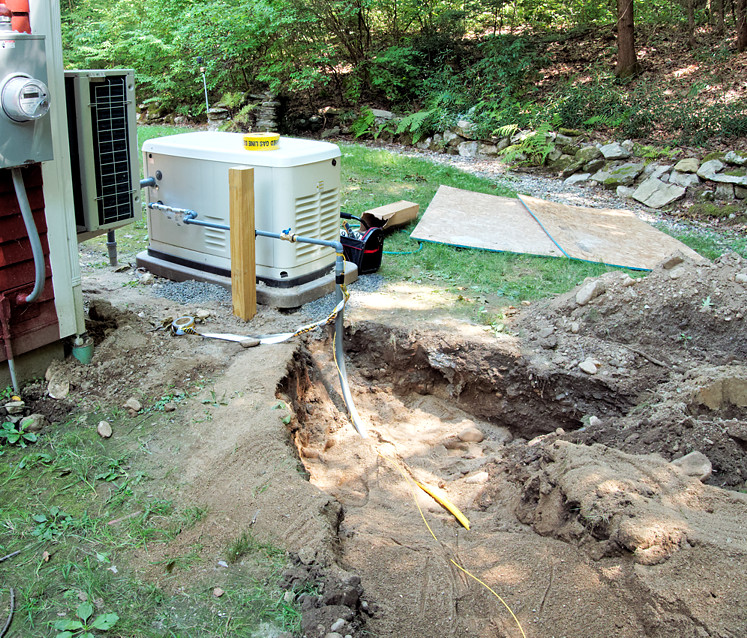 Nate Smith arrives soon after the gas line is installed and starts up the Generac without difficulty.