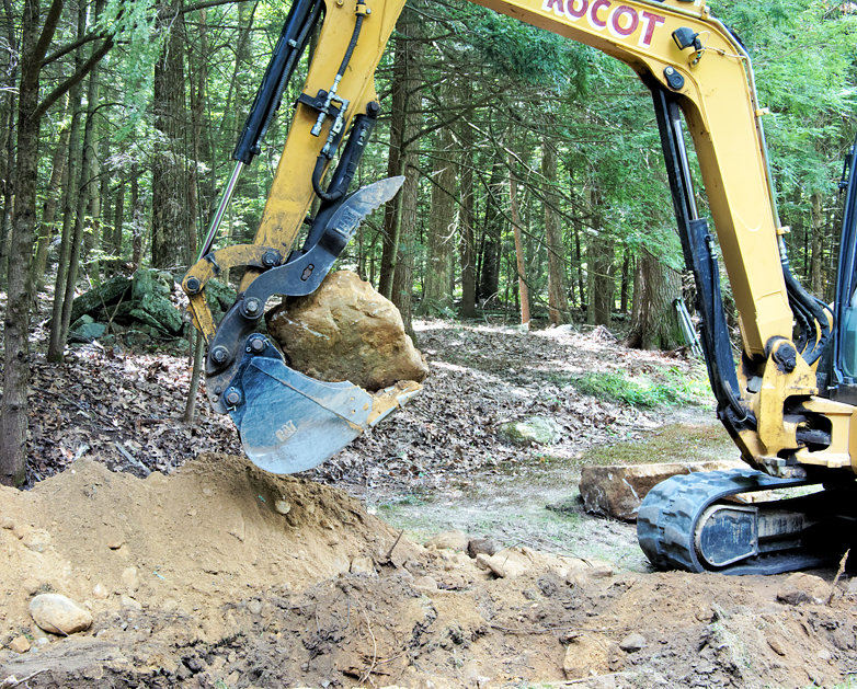 I am amazed by the dexterity of these small backhoes and their drivers. Their strength is also startling when they are handling the massive rocks that my few acres of New England soil can grow.