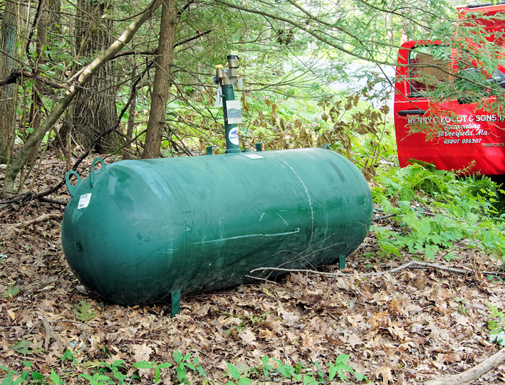 Of Schedules and Storms The Plan Follows the weekend - after which, on the morning of Monday, August 3rd, Kocut will complete the trench and dig a hole for the gas tank. At the same time, the gas company will deliver the 100 gallon propane tank that Kocot's equipment will then place in the ground. Before the end of the day, the technicians will have run the pipeline from the tank to the Generac. Local inspectors will have made sure the installation is safe. The gas company will then fill the tank with its first load of propane. Kocut will then bury everything, re-grade and re-seed the lawn, and put down a layer of hay. The electrician, Nate Smith, will come by to make the final connections to the house's electrical system either late this afternoon or on Tuesday morning. This scheduled had been carefully arranged and coordinated by David and Bob. Unfortunately, over the weekend, I start worrying about my decision, taken some months earlier, to install a 100-gallon tank instead of a 250-gallon tank. What's behind my Second Thoughts Back in the fall, I had been persuaded by folks at one gas company that I didn't need a 500-gallon tank, which had been my first inclination. A tank half that size was far preferable. But then in the spring, when Bob was arranging matters with another gas company, the owner insisted that I didn't need to store 250 gallons of gas. A tank of 100 gallons would be sufficient. At my request, Bob and David kept pushing for the larger tank but the boss kept insisting on the smaller unit. Eventually I agreed to follow the expert's advice. But over this final weekend I found myself worrying yet again about tank size. I tried to quash my hesitations. But when Sunday night came I sent around sheepish emails to Bob and David, apologizing for my dithering, but wondering if it were too late to install the 250 gallon tank. I knew there would be another delay and extra expense - but I'd be far more comfortable if we changed. Regrouping Early Monday morning Bob and David started canceling everyone's plans. David reached the gas company owner at the very moment he was picking up the 100-gallon tank. I felt like a twerp but, as usual, the Thayer Street folks were most understanding and good-natured. The 250-gallon tank would have to be ordered and it might be two weeks before it arrived. All the subcontractors remained onboard the project. So we postponed activating the Generac for another couple of weeks.