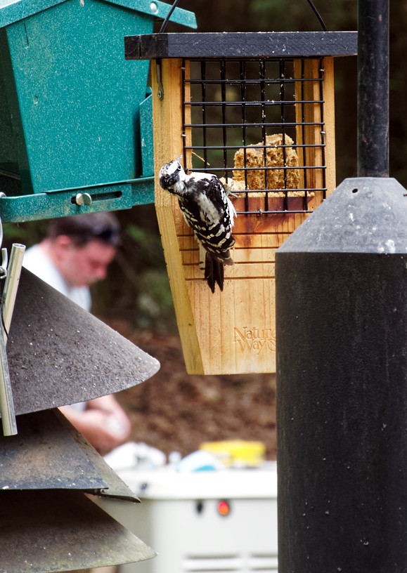 woodpeckers are especially obstinate in their desire to get at the peanut suet.