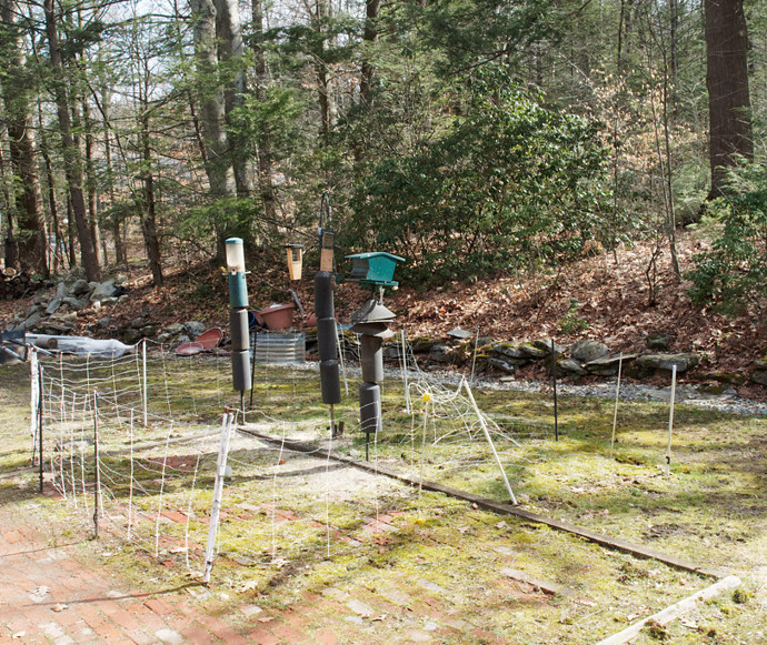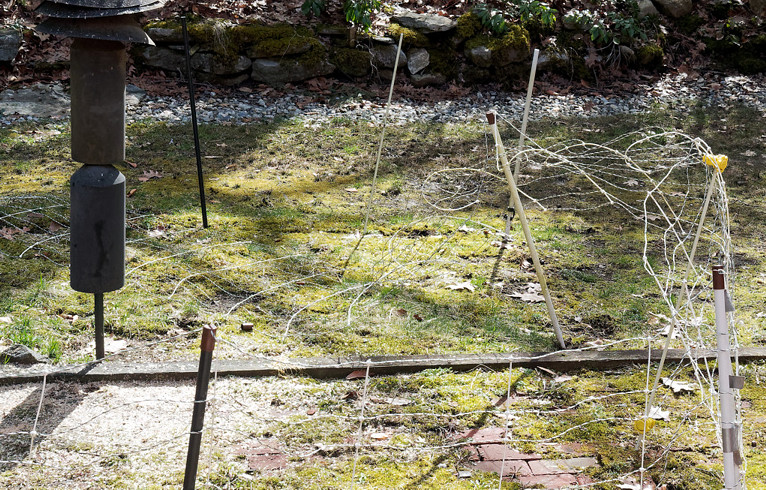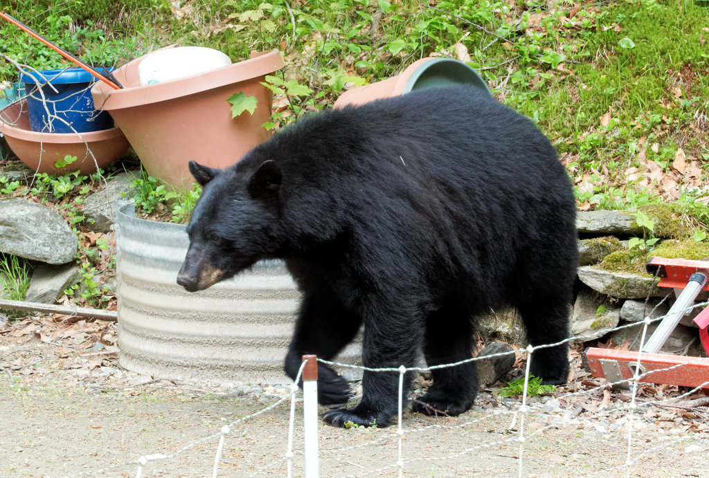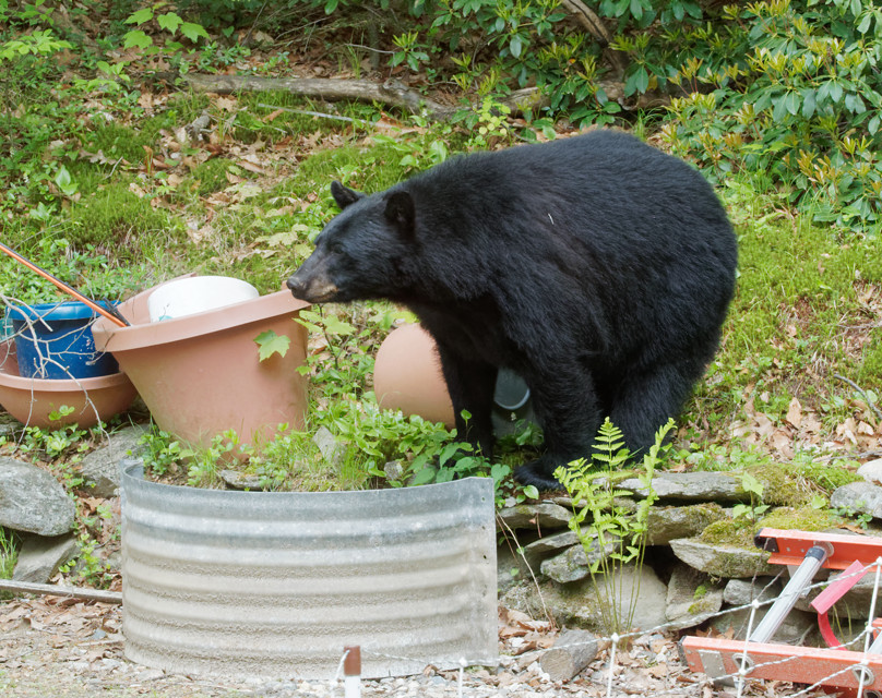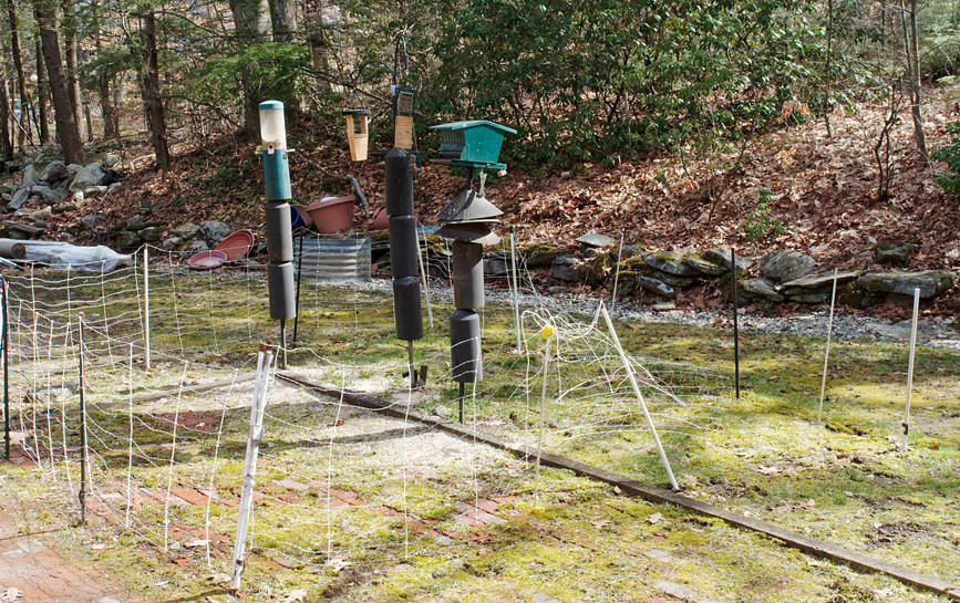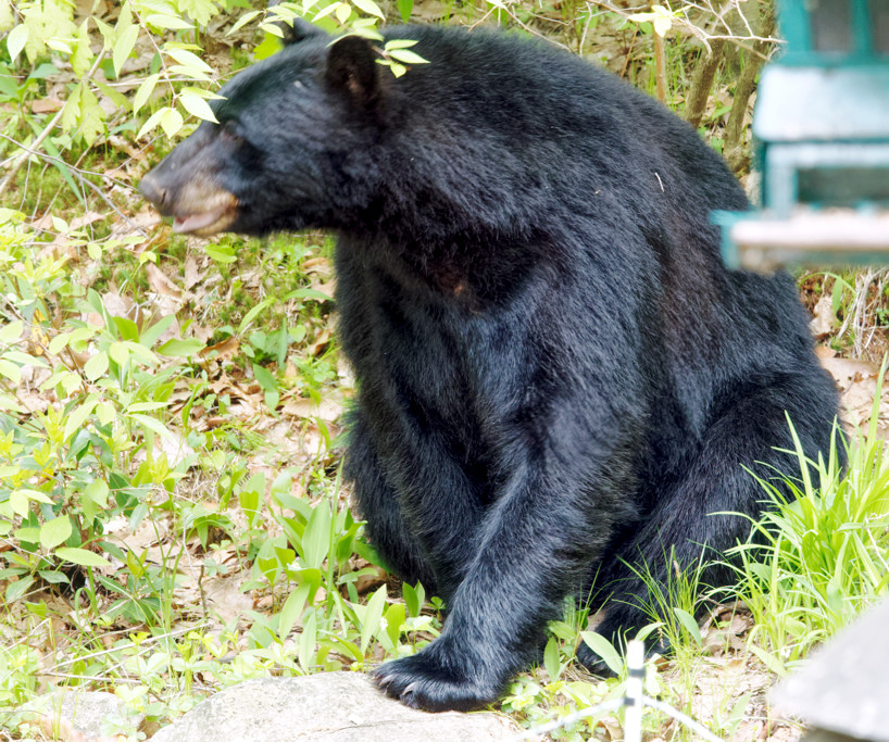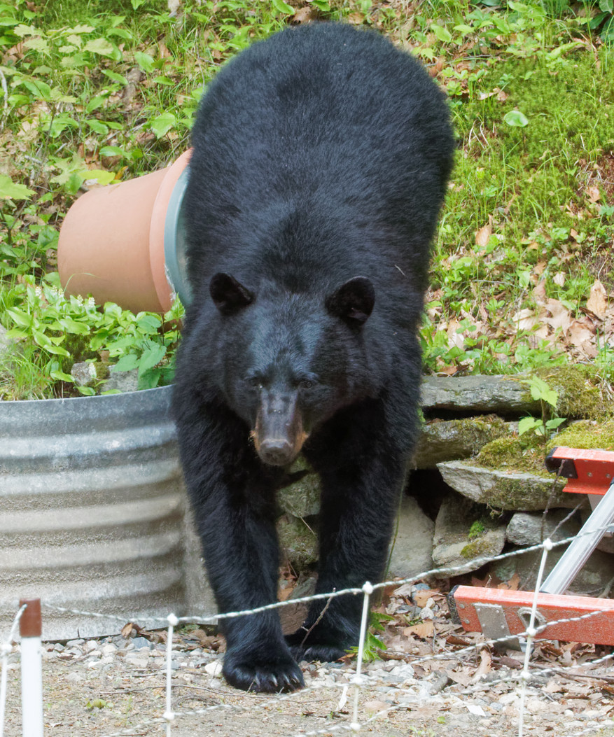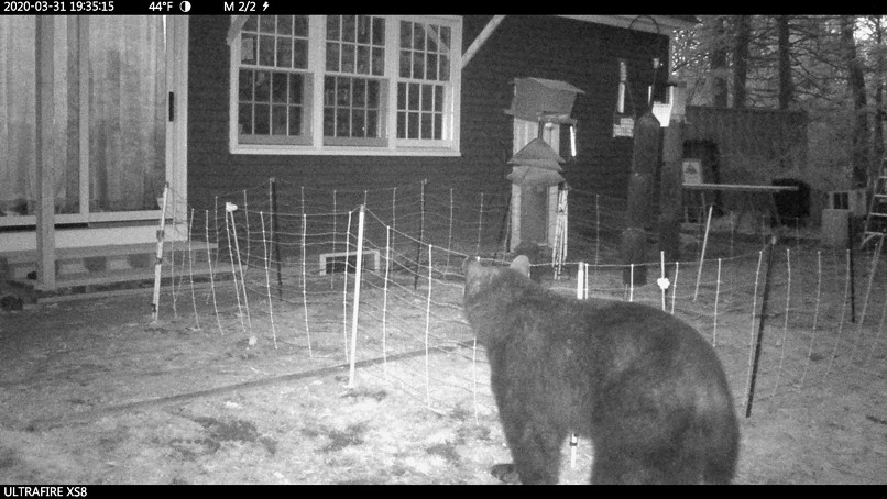 Upon opening my kitchen curtains this morning, I saw a strange sight. Though almost a third of the electric bear fence was down, none of the bird feeders was touched.